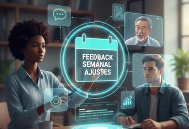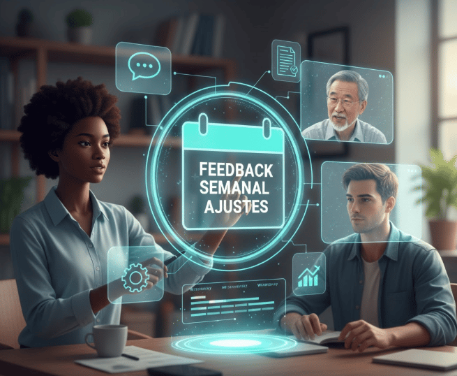 Reuniões online com feedback e ajustes.
